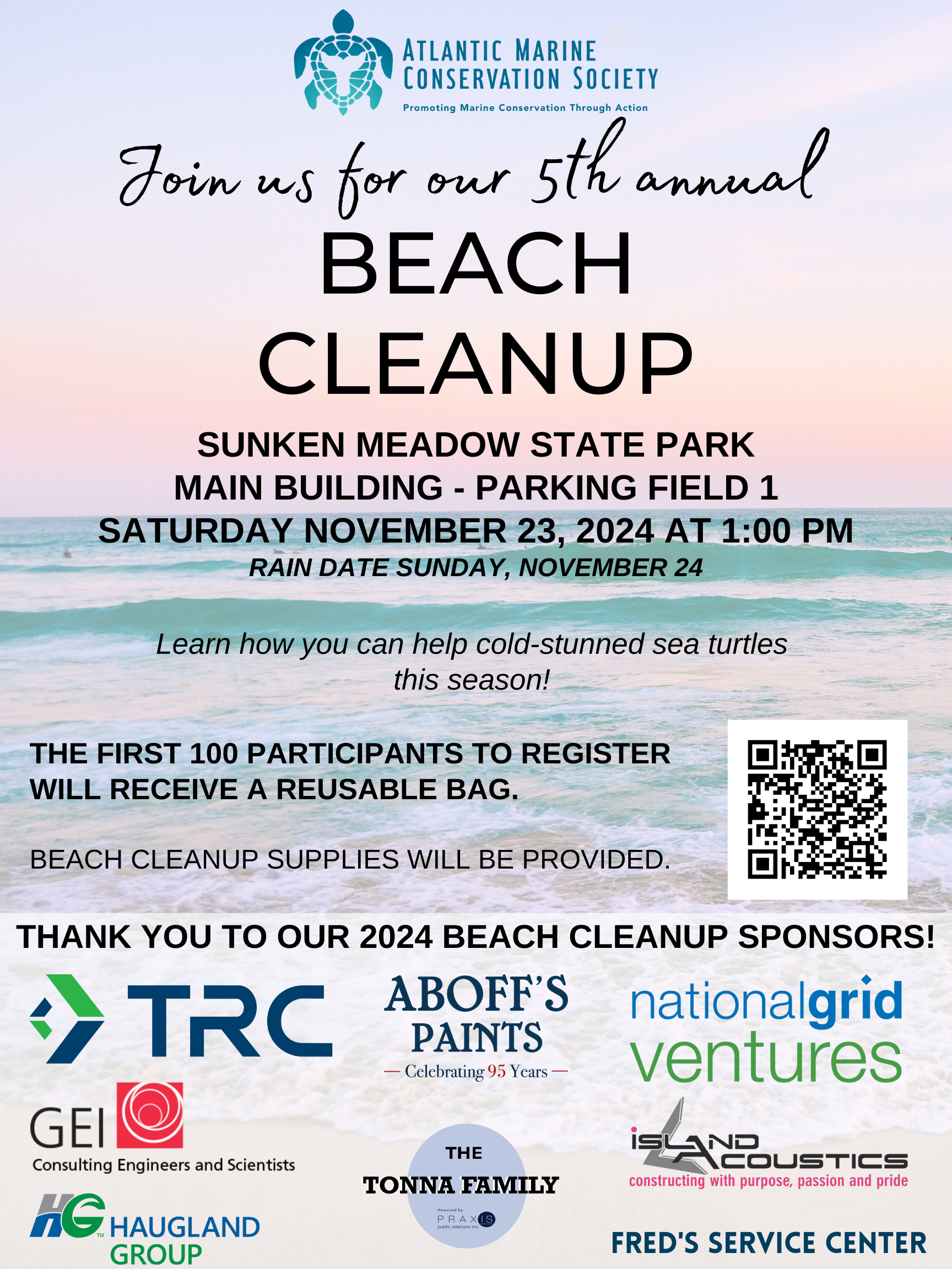 Our annual Sunken Meadow State Park beach clean-up will be held on Saturday, November 23, 2024!
